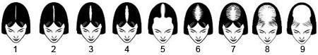 Τα στάδια αραίωσης, σε αλωπεκία ανδρών και γυναικών αντίστοιχα: